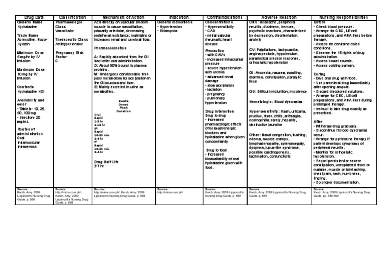 Med Card 7 Hydralazine Instructions For Each Chapter That Teaches About Medications Fill In Studocu